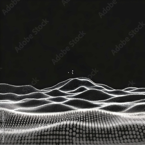 Wall mural : Abstract 3d landscape forms gentle curves with particles elegantly in a dark environment -