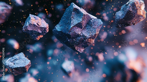 Wall mural abstract 3d landscape with floating rocks and shimmering particles