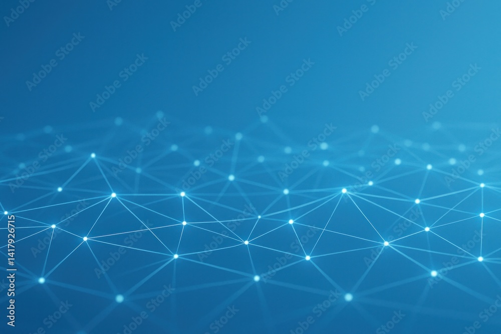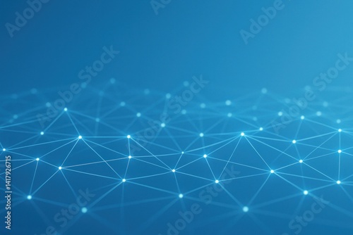 Wall mural : Abstract 3d mesh of interconnected nodes and lines forming digital network, clean blue gradient tech