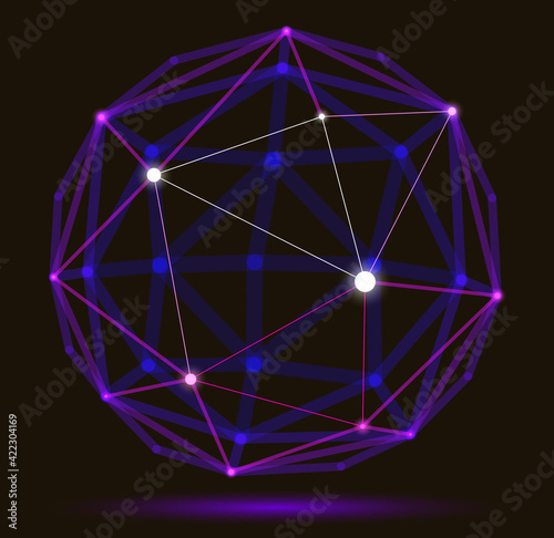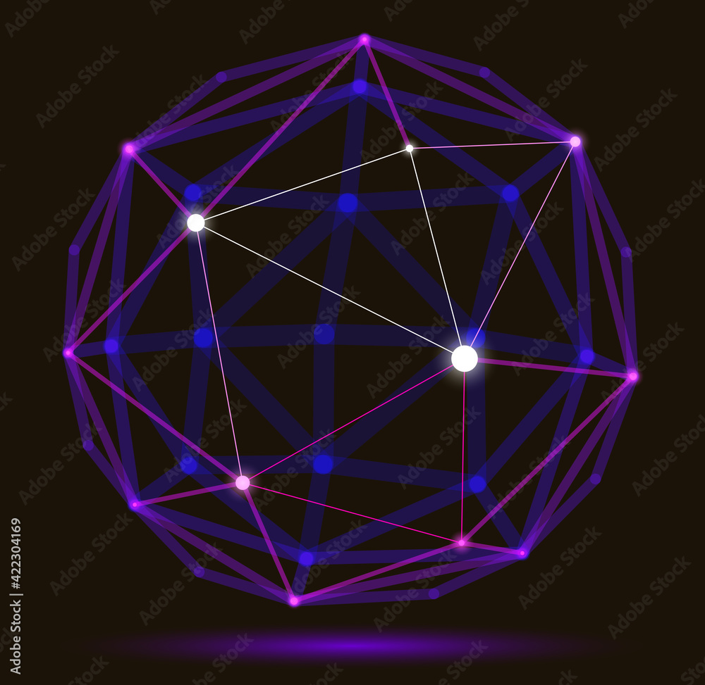 The watermark will not be included on Wall mural.: Abstract 3d mesh sphere vector illustration, dots connected with lines technology polygonal object,