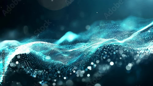 The watermark will not be included on Wall mural.: Abstract 3d particle wave with neon blue light and bokeh effects