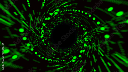 Abstract 3d portal - circle tunnel or wormhole - digital background with connected green dots - 3d rendWall mural