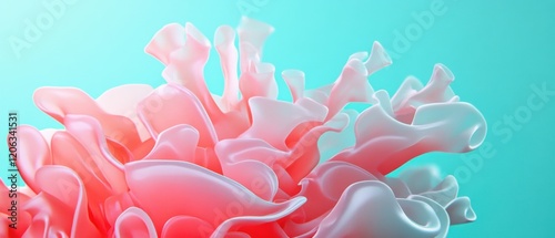 The watermark will not be included on Wall mural.: Abstract 3d render of flowing pink and white shapes against a light blue background, creating a smoo