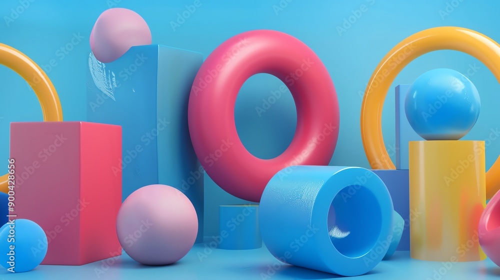The watermark will not be included on Wall mural.: Abstract 3d render of geometric shapes in different bright colors -