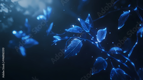 Wall mural : Abstract 3d render of glowing blue lines on a dark background - [lunar botanica] | etherleaf vines |