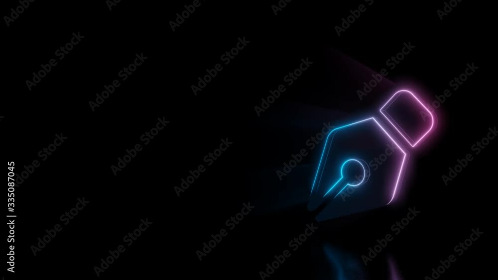 The watermark will not be included on Wall mural.: Abstract 3d rendering glowing blue purple neon symbol of pen nib with glowing outlines with rays on
