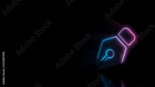 Wall mural abstract 3d rendering glowing blue purple neon symbol of pen nib with glowing outlines with rays on
