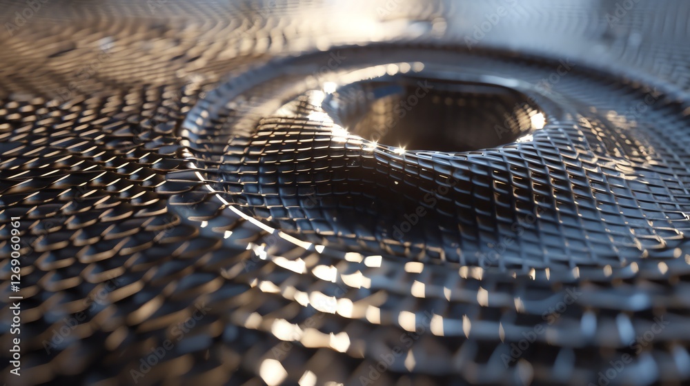 The watermark will not be included on Wall mural.: Abstract 3d rendering of a surface with a hole in the center - the surface is made of a grid of small
