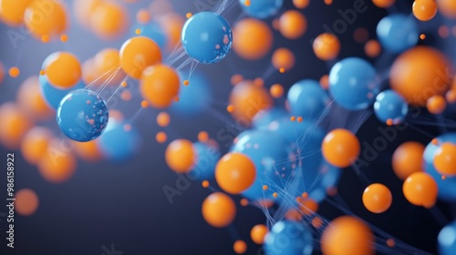 The watermark will not be included on Wall mural.: Abstract 3d rendering of blue and orange spheres connected by a white web-like structure -