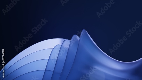 Abstract 3d rendering of dark blue wave frosted glass - design element for website banner, header, coWall mural