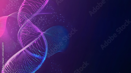 The watermark will not be included on Wall mural.: Abstract 3d representation of a double helix dna strand with glowing lines and dots