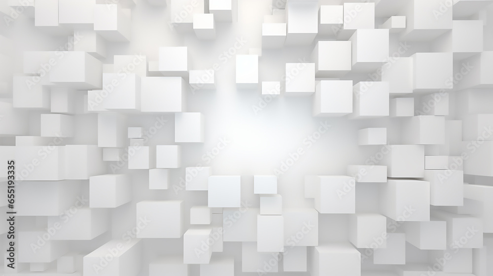 The watermark will not be included on Wall mural.: Abstract 3d square white technology communication concept background - random shifted white cube squa