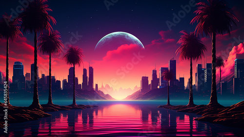 Wall mural : Abstract 3d synthwave colorful neon background banner