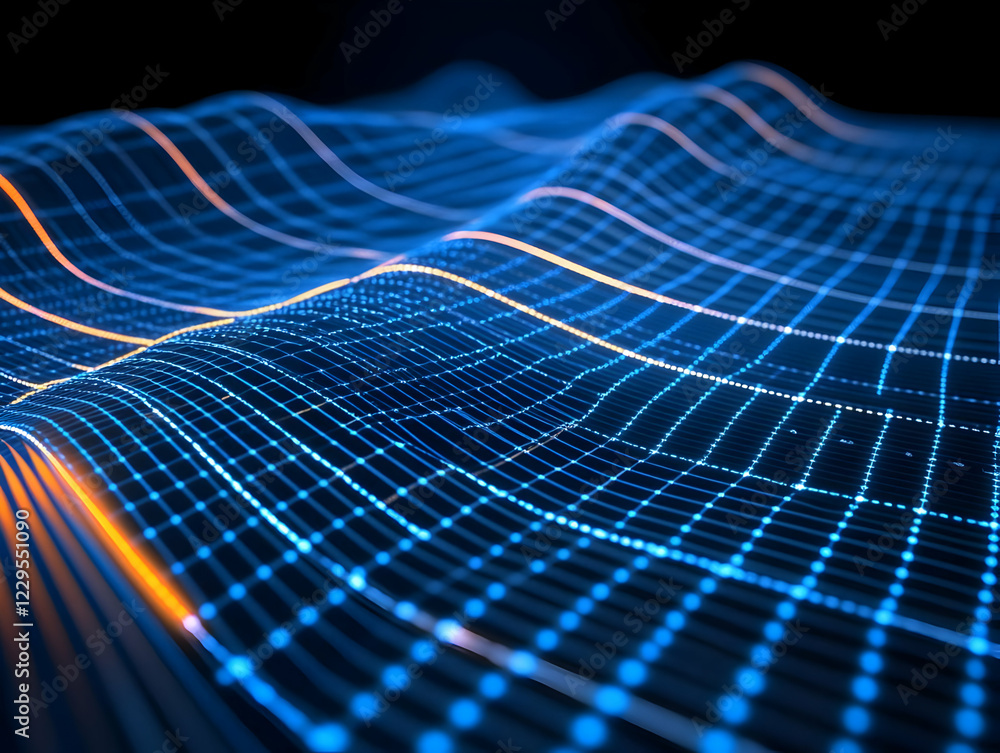 The watermark will not be included on Wall mural.: Abstract 3d wireframe mesh waves elegantly in a dark background