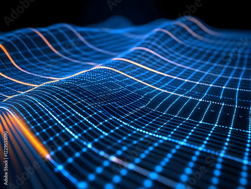 Wall mural abstract 3d wireframe mesh waves elegantly in a dark background