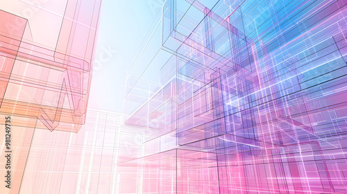 Wall mural abstract 3d wireframe structure of a website layout, futuristic web development visualization, digit - Wall murals Wall mural abstract 3d wireframe structure of a website layout, futuristic web development visualization, digit - Wall murals