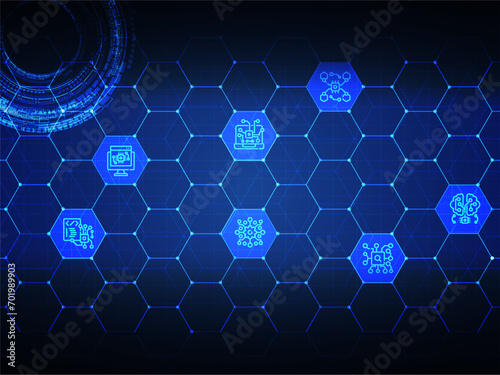 Wall mural abstract ai artificial intelligence blue data future futuristic circuit technology background