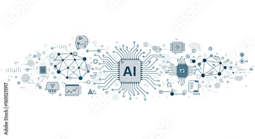 Wall mural abstract ai technology infographic featuring neural networks and circu - Wall murals Wall mural abstract ai technology infographic featuring neural networks and circu - Wall murals