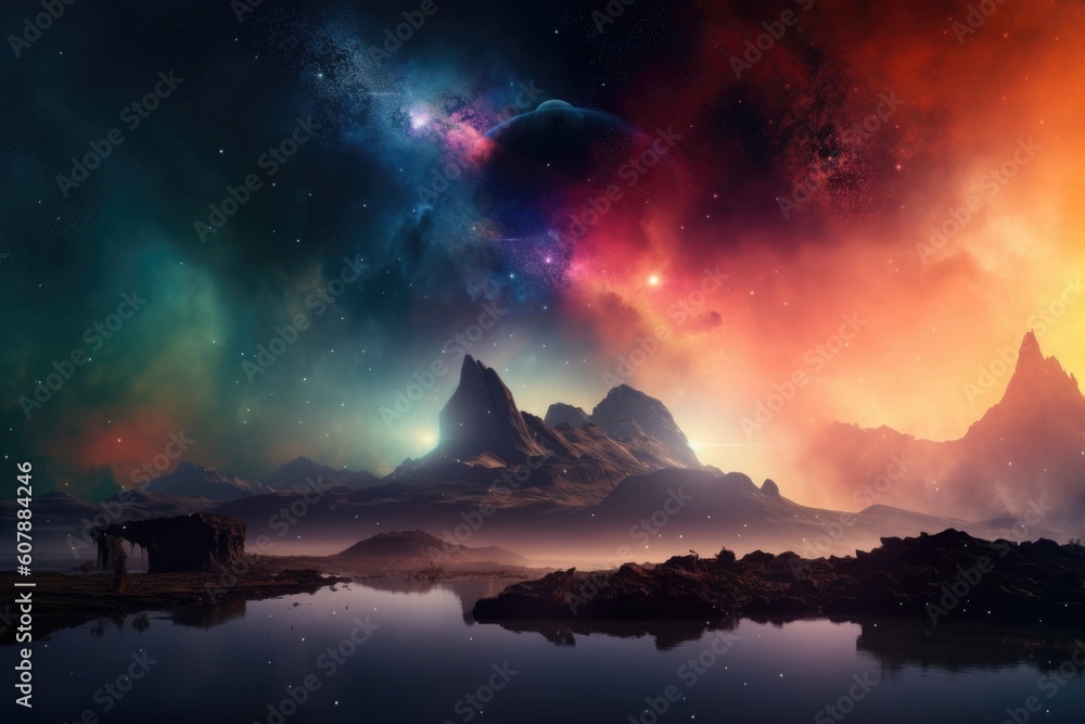 The watermark will not be included on Wall mural.: Abstract and surreal landscape with nebula in the background, created with generative ai