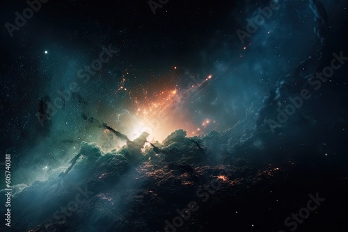 The watermark will not be included on Wall mural.: Abstract and surreal scene of nebula with stars, floating in the void, created with generative ai