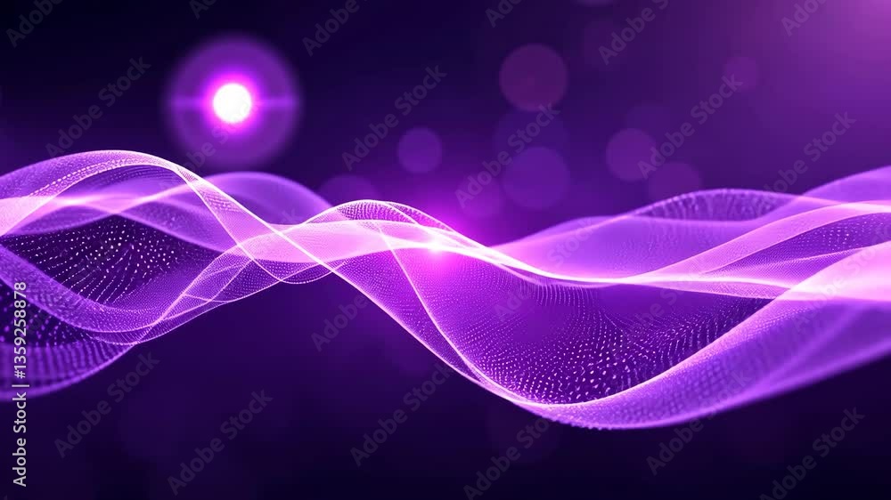 Wall mural : Abstract animated digital wave of purple particles with bokeh lights and lens flare on dark backgrou
