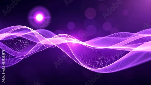 Wall mural abstract animated digital wave of purple particles with bokeh lights and lens flare on dark backgrou