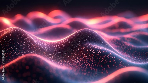 Wall mural : Abstract animated visualization of flowing neon light wave particles in a futuristic digital display