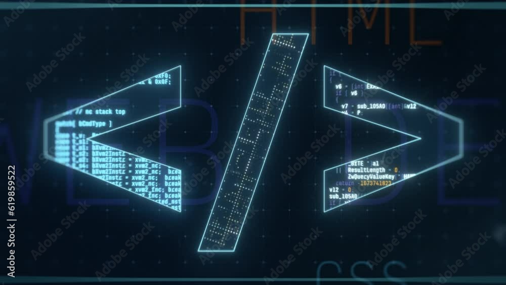 Wall mural : Abstract animation about web development and coding, represented by the iconic symbol, concept of te