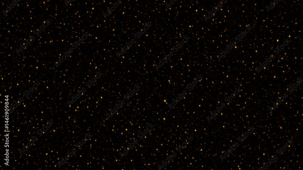Wall mural : Abstract animation loop floating glow gold stars dust particles flow up on black background - 4k 3d s