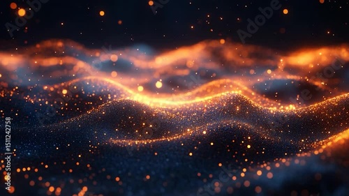 Wall mural : Abstract animation of flowing golden lights creating a dynamic visual with shimmering particles agai