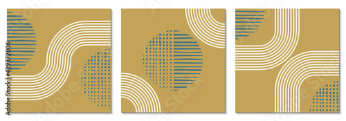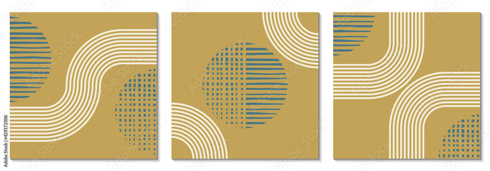 Wall mural abstract art background set with geometric shapes. minimal design with circles and lines. square con