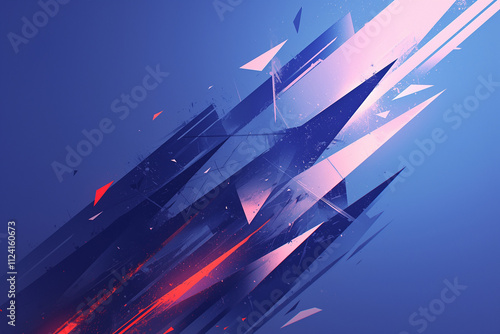 The watermark will not be included on Wall mural.: Abstract art depicting sharp geometric shards in a fiery explosion of blues and reds