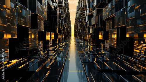 Wall mural abstract art of digital cityscape with golden light and grid structures. aig53f.