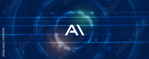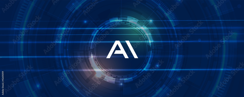 Wall mural abstract artificial intelligence. cloud computing. machine learning. technology web background. virt