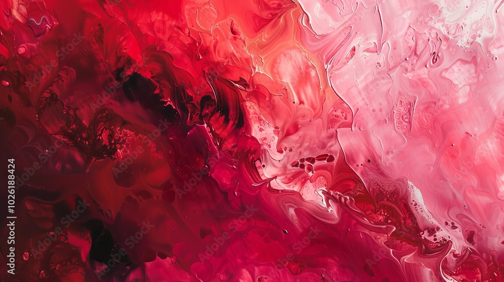 The watermark will not be included on Wall mural.: Abstract artwork featuring vibrant red and pink colors blending in dynamic swirls and textures, capt