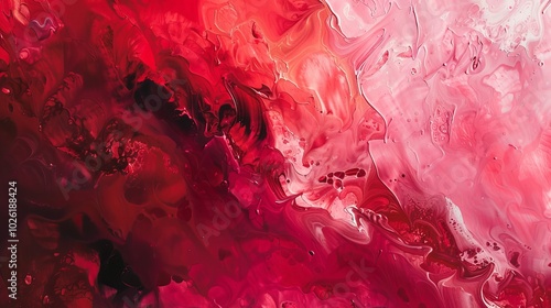 Wall mural : Abstract artwork featuring vibrant red and pink colors blending in dynamic swirls and textures, capt