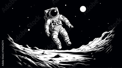 The watermark will not be included on Wall mural.: Abstract astronaut floating above the moon surface during landing - simple vector art