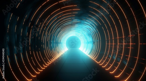 Wall mural abstract background, tunnel of glowing arcs. 3d render. generative ai