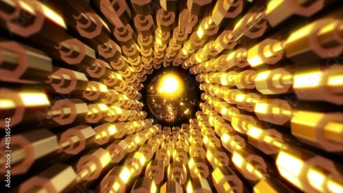 Wall mural : Abstract background 3d animation shiny jewelry like structure rotating and transforming in space sea
