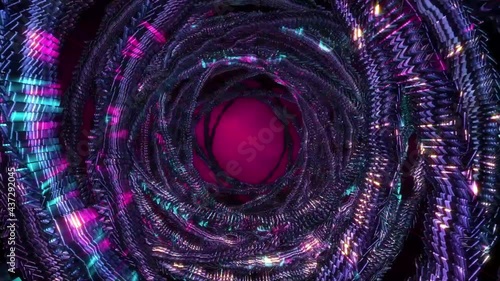 Wall mural abstract background 3d shiny spiral and concentric blue structure moving, fluctuating and glittering