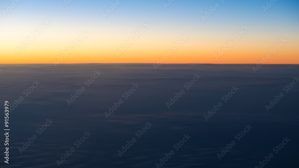 Wall mural : Abstract background blur sunset sky and cloud view from airplane