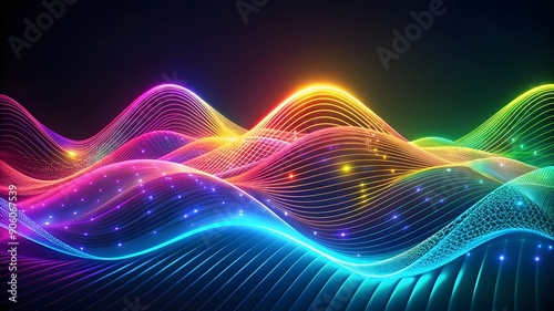 Wall mural : Abstract background design for waving particle technology - abstract wave moving dots flow particles,