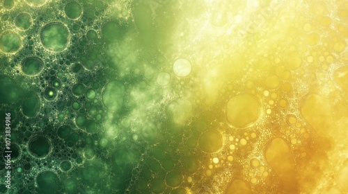 The watermark will not be included on Wall mural.: Abstract background featuring a green and yellow color palette with intricate raster fractal graphic