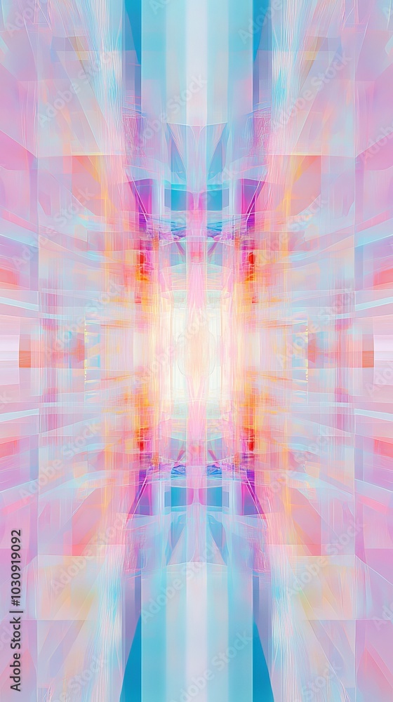 The watermark will not be included on Wall mural.: Abstract background featuring converging light trails in pink and blue tones, creating a sense of de