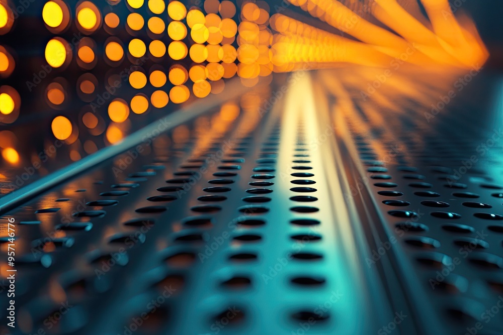 Wall mural : Abstract background featuring vibrant lights reflecting off a textured surface, creating a dynamic v