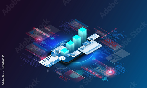 Wall mural : Abstract background image, online technology concept on laptop, data analytics - charts and graphics