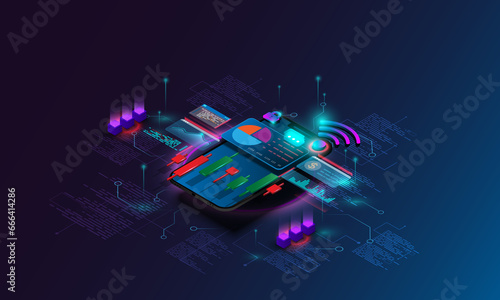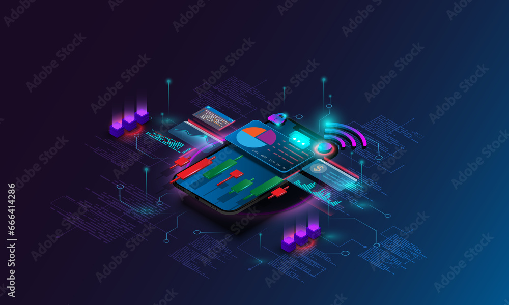 Wall mural abstract background image of web development technology. financial graph stock market on smartphone