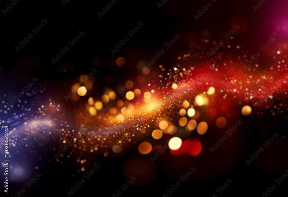 The watermark will not be included on Wall mural.: Abstract background of blurred golden light and bokeh against a dark red and black backdrop -