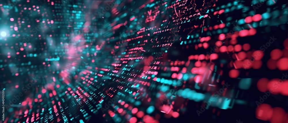 Wall mural : Abstract background of coding software for artificial intelligence, blue and violet tone