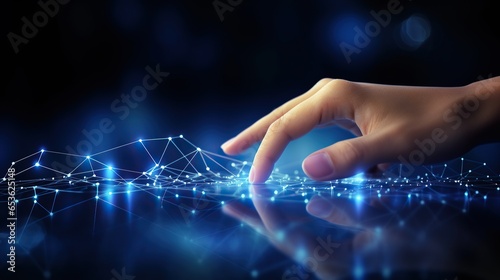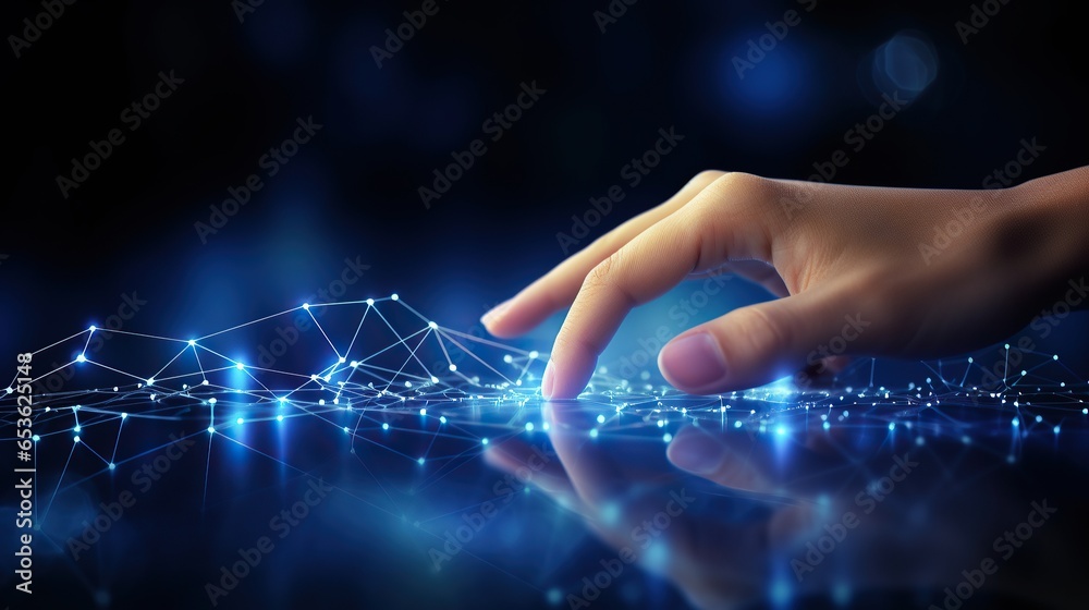 Wall mural abstract background of hands touching digital transformation virtual screen. technology connection d